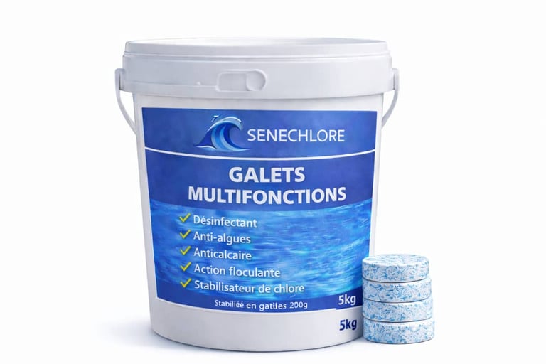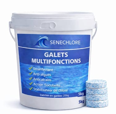 Désinfection, anti-algues, floculation, stabilisation et clarification. Solution complète pour un entretien simplifié de la piscine.