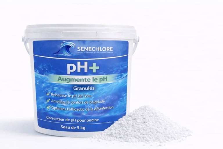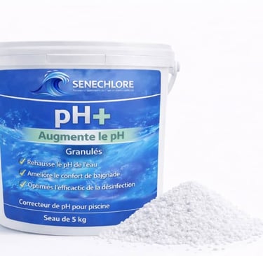 pH+ (réhausseur de pH) : produit correcteur qui augmente le pH de l’eau quand elle est trop acide. Il aide à stabiliser l’eau, améliorer le confort de baignade et optimiser l’efficacité du chlore.